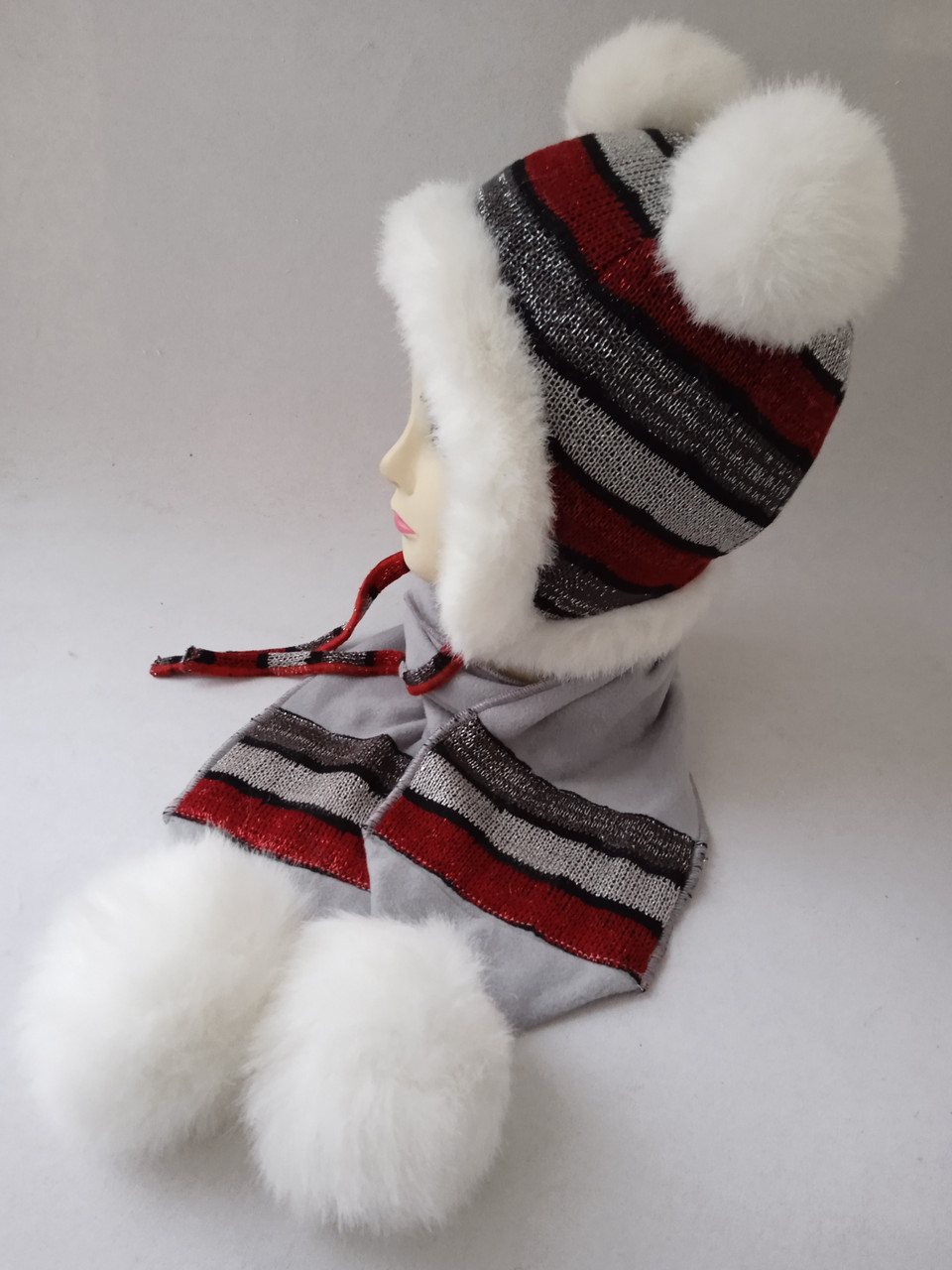 Шапка та шарф | Набір шапка шарф із флісу | Шапка для дівчинки ОГ 48-50 см | Шапка з хутром